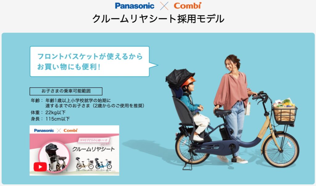 combiと開発したチャイルドシートは、サンシェードが標準装備で真夏の時期、直射日光や紫外線から子どもを守ります。また、パナソニックならではの電動自転車の電源をONにすると自動で鍵が開錠できる車種もあります。